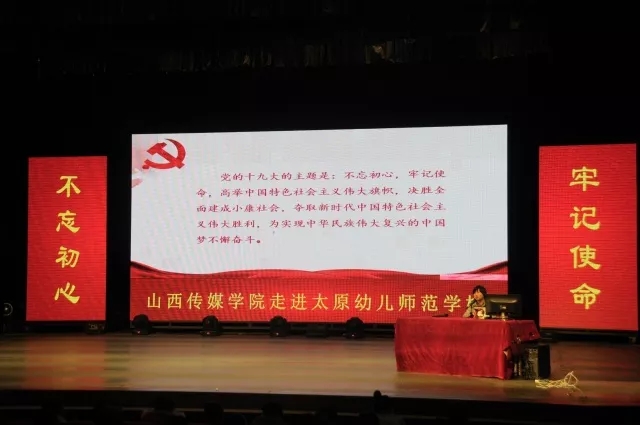 12月19日下午,我院党的十九大精神进基层高校“百千万”师生面对面行动宣讲实践小分队走进太原幼儿师范学校。我院思政部老师刘玮做主题宣讲。太原幼儿师范学校党委书记陆克祥、各部门负责人以及全校师生800余人参加。