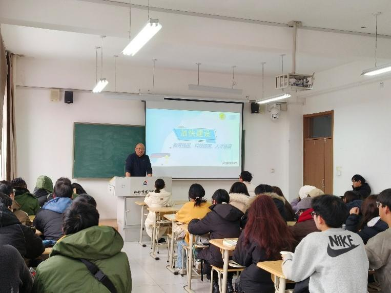 管晓刚通过中外比较,讲授了教育、科技、人才对全面建设社会主义现代化国家的重大战略意义;随后结合自身的经历及我校的发展实际,分析了我国当前在教育、科技、人才领域存在的不足及优势;最后通过讲解教育、科技、人才三者之间的密切关系,进一步阐释了加快建设社会主义现代化强国的战略部署。