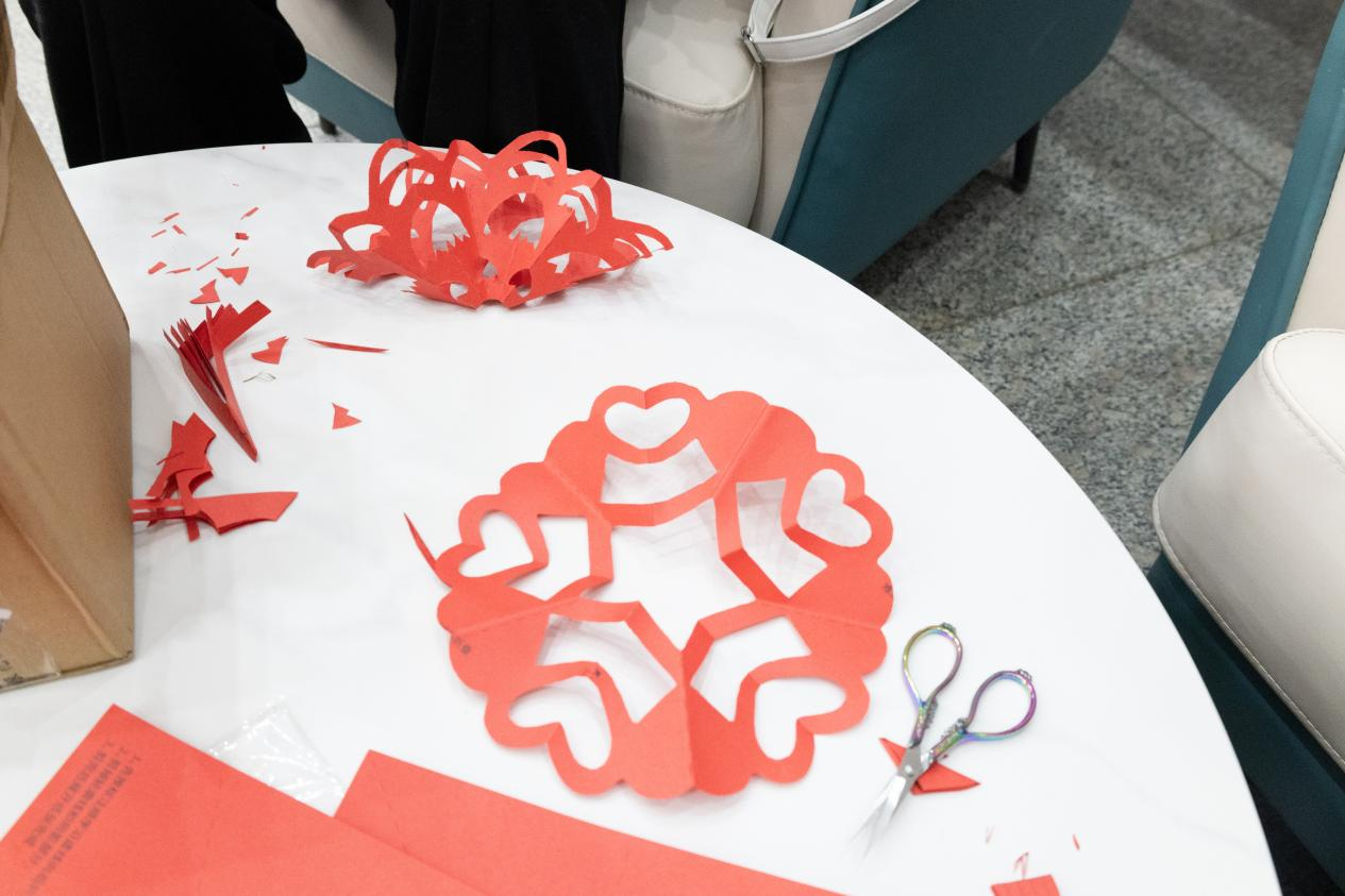第三部分为现场教学演示:指导老师与社团成员结合思政课实践教学要求,展示了如何制作与红色文化内容相关的手工艺品。师生们动手尝试,亲身体验了传统手工艺的魅力,进一步加深了对中国共产党人精神谱系和红色文化的理解。