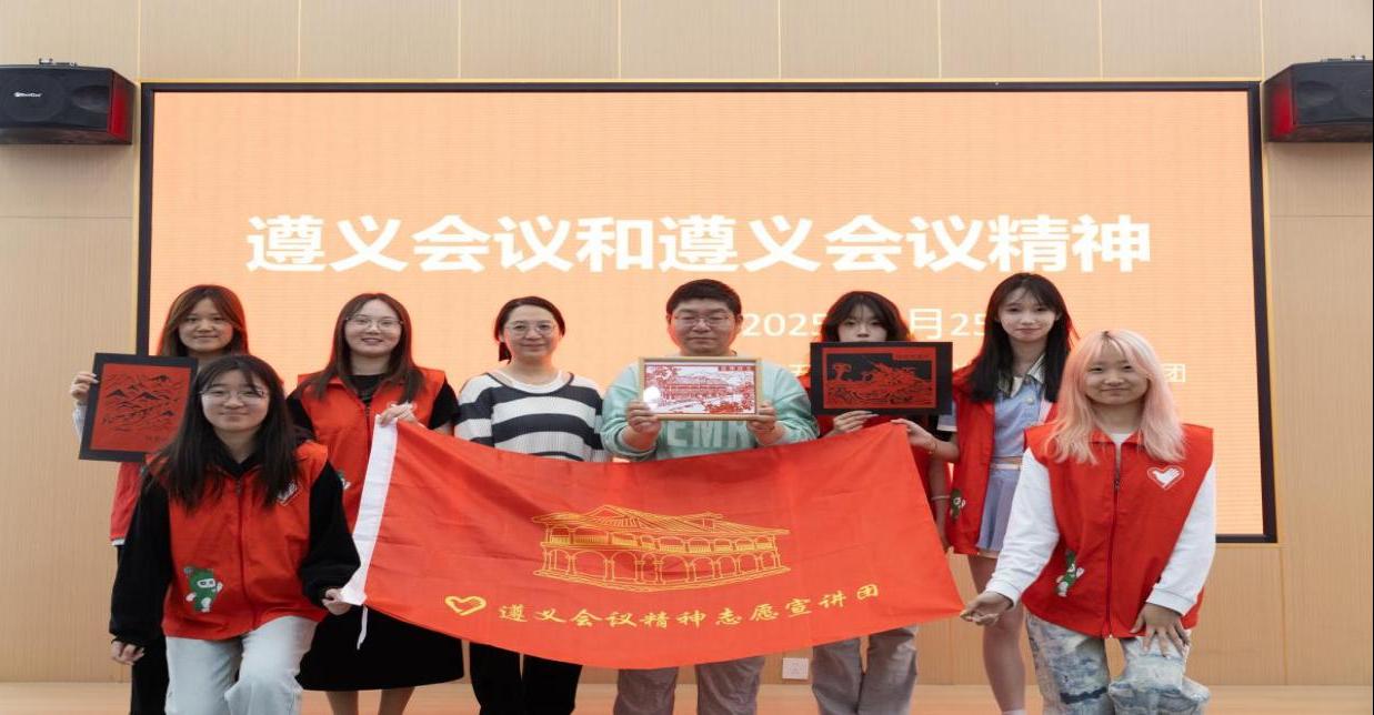 第一部分为遵义会议精神宣讲:活动以遵义会议精神宣讲拉开序幕,我校大学生遵义会议精神宣讲团成员结合思政课教学内容,深入回顾了遵义会议的历史背景与重大意义。通过剪纸作品等艺术形式,生动呈现了“美术中的中共党史”,让师生们深刻感受到了红色文化的革命情怀。