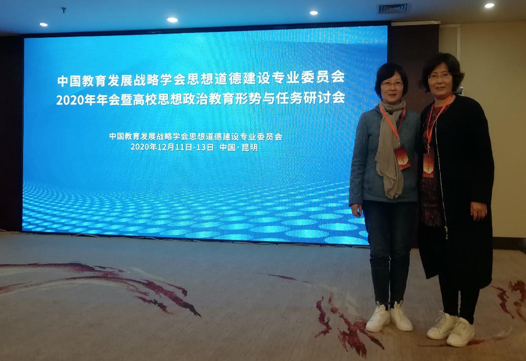 为深入学习贯彻习近平总书记在学校思想政治理论课教师座谈会上的重要讲话精神,全面贯彻党的十九届四中、五中全会精神,中国教育发展战略学会思想道德建设专业委员会于2020年12月11-13日在昆明举办了思想道德建设专业委员2020年年会暨高校思想政治教育形势与任务研讨会。来自全国高校的200余名代表参加了研讨会。思政部教师王美清、范仙珍参加了研讨会。